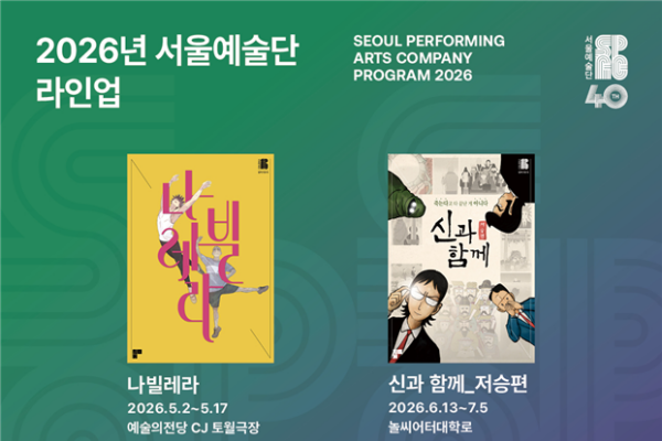 서울예술단은 2026년을 맞아 총 4편의 작품으로 구성된 시즌 라인업을 공개했다. 서울예술단은 한 해 동안 3편의 대표 레퍼토리, 1편의 창단 40주년 기념 특별공연을 선보이며, 지역 및 해외 투어를 병행해 한국 ..